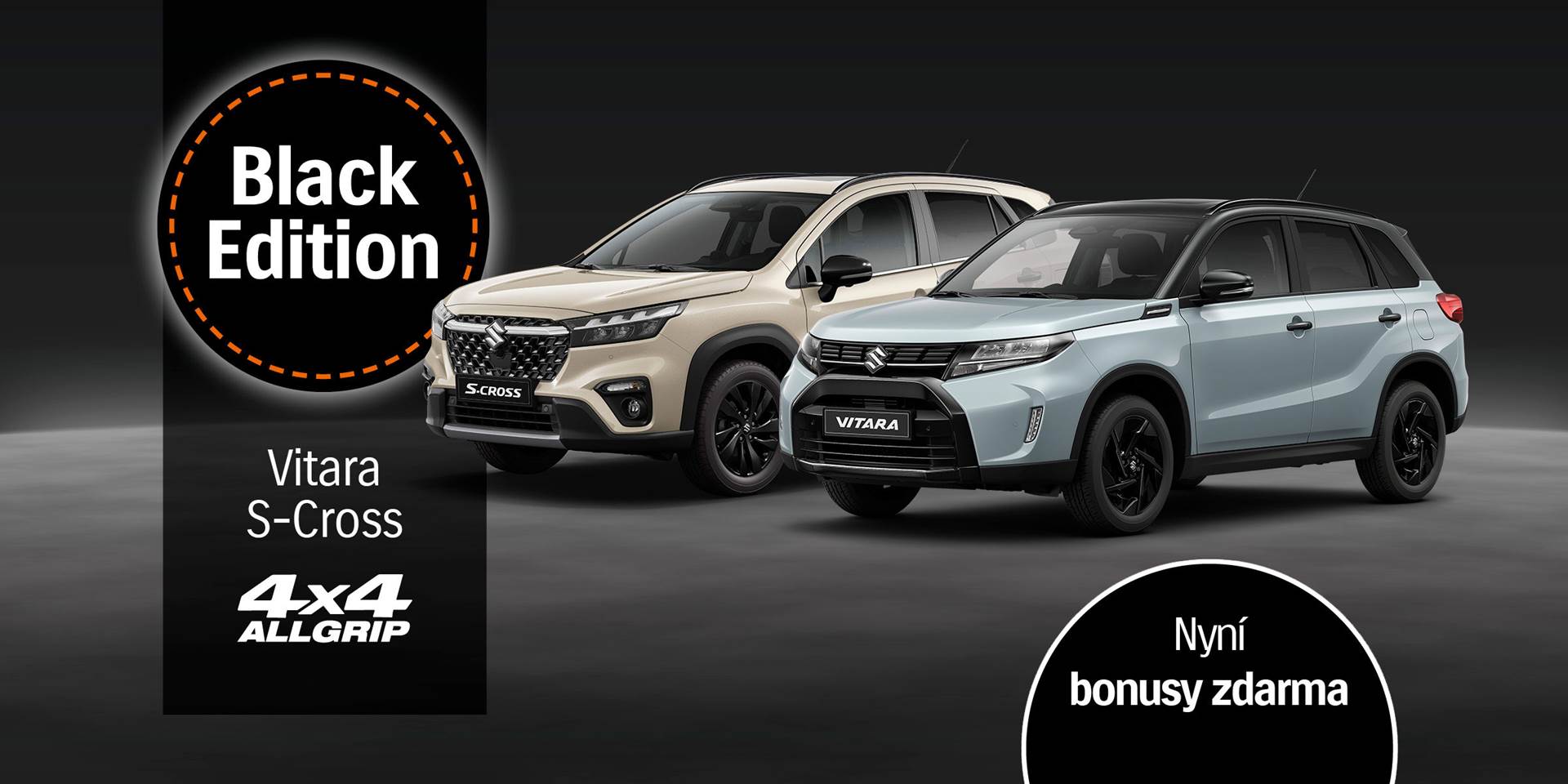 Modely Vitara a S-Cross pořídíte nyní navíc s akčními bonusy v celkové hodnotě nejméně 44 000 Kč. Tato nabídka se vztahuje , jak na standardní provedení, tak i limitovanou verzi Black Edition.